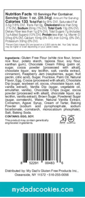 The ultimate treat for the indecisive cookie lover – our 20 Count Assortment features 6 of our best-selling flavors! A 20 Count Assortment of our top gluten-free cookies (3 Chocolate Graham, 3 Chocolate Fancy, 3 Raspberry Linzer, 3 Chocolatta, 3 Vanilla Graham, 5 Chocolate Chip) contains bioengineered food ingredients