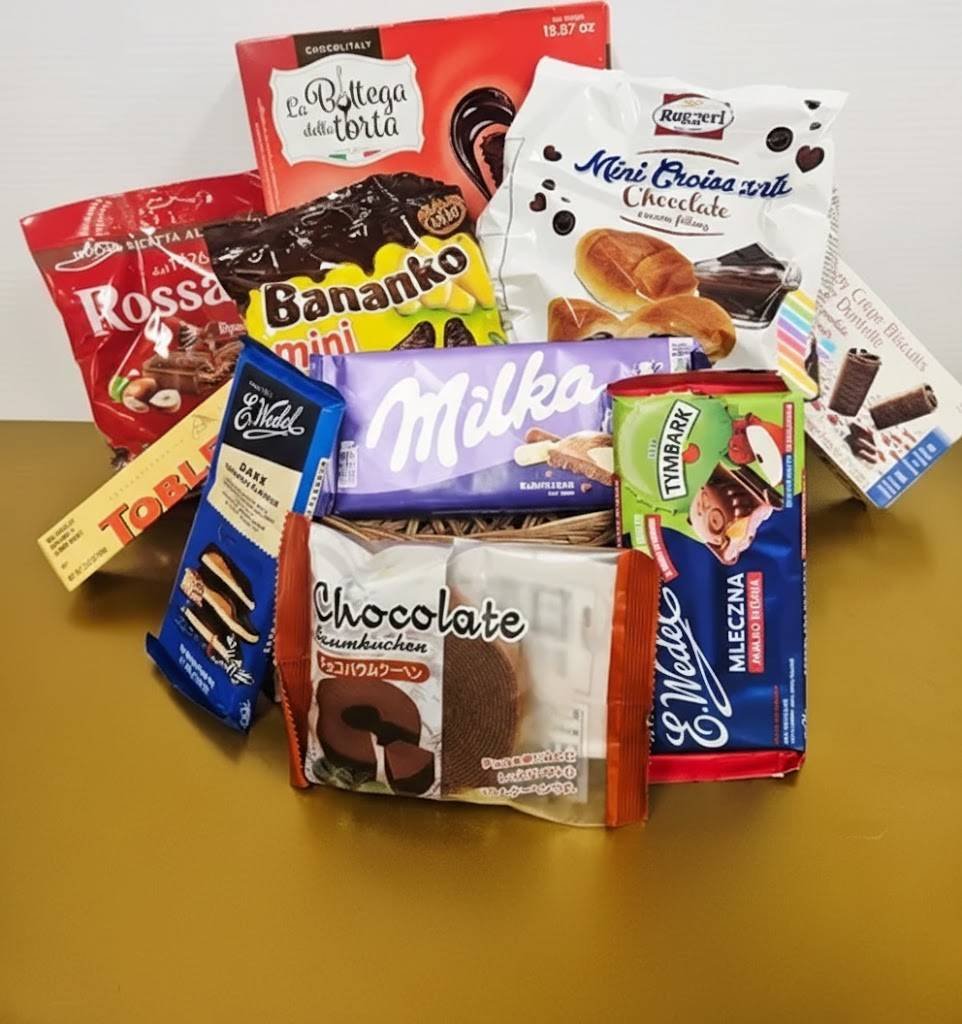 Chocolitaly Double Chocolate Cake Mini Italian Croissants with Chocolate Cream Taiyo Foods Chocolate Baumkuchen Dark Chocolate Crepe Dentelle Cookies Rossana Chocolate Filled Candy With Hazelnuts E. Wedel dark chocolate with tiramisu filling E. Wedel Milk chocolate cherry & apple chocolate bananas mini’s / E. Wedel chocolate/coconut Milka Chocolate milk/white chocolate bar Toblerone/Comptoir du cacao>