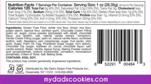 A Linzer lover’s dream come true! Our Vanilla Linzer Trio will blow your tastebuds away! Two vanilla cookies with an assortment of fillings: Vanilla Cream, Chocolate Cream, and Raspberry Jam Gluten-Free, Dairy Free, Nut Free and delicious **Only available in 7oz Package** Contains bioengineered food ingredients 1 Case contains 12 packages of cookies